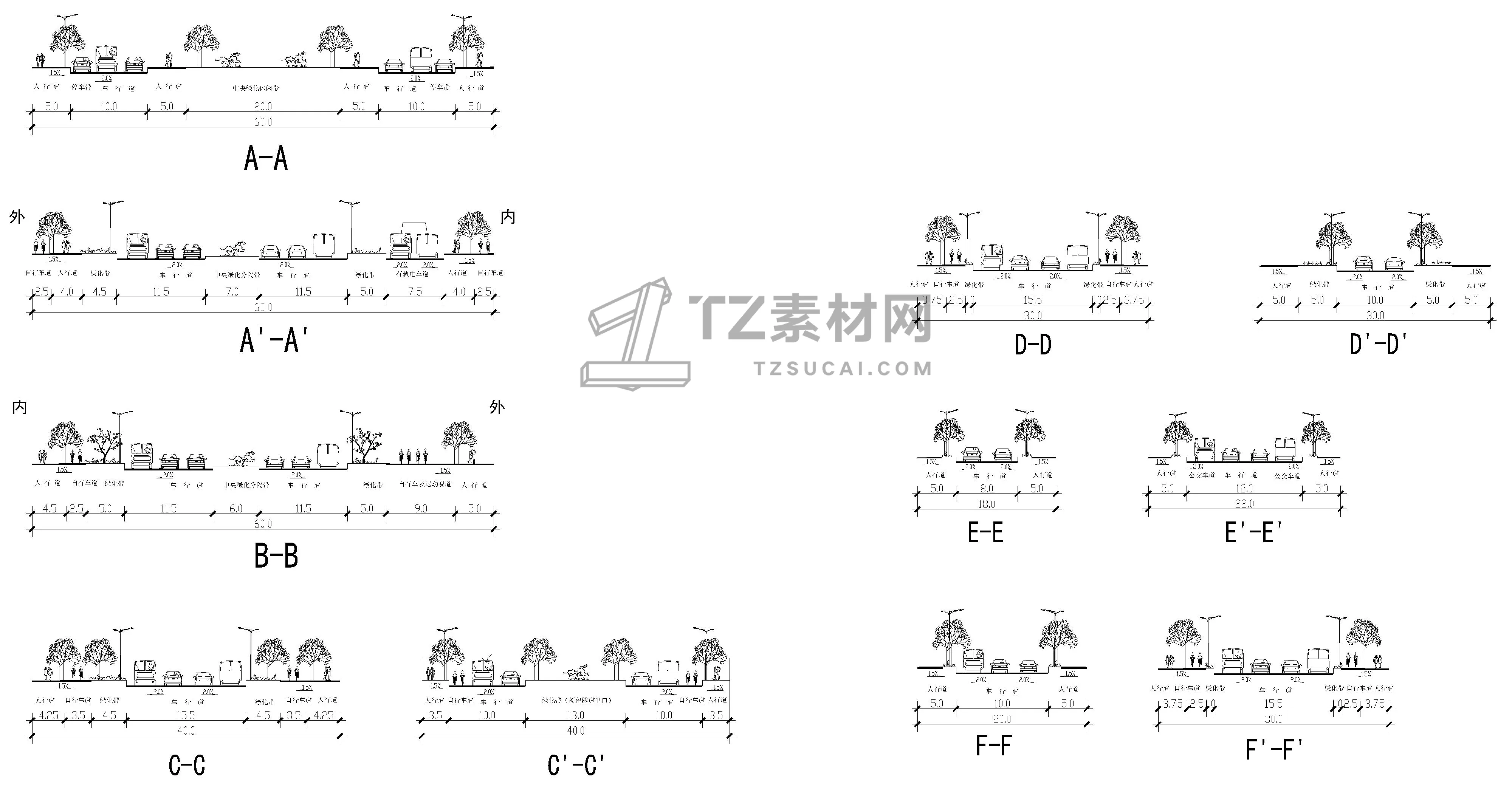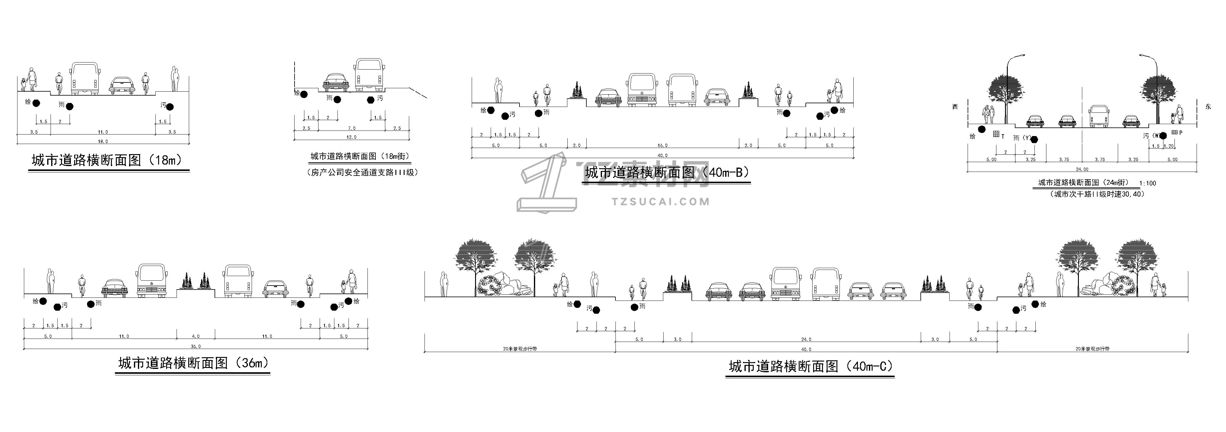 12套道路橫斷面CAD道路橫截面CAD道路剖面圖CAD道路斷面圖CAD城市道路標(biāo)準(zhǔn)綠化斷面圖