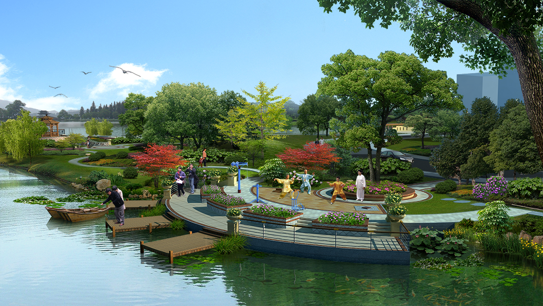 濕地濱水園林景觀psd素材下載