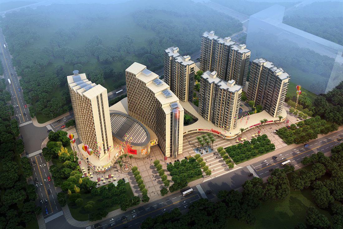 商業(yè)建筑鳥瞰圖景觀后期psd分層圖層源文件